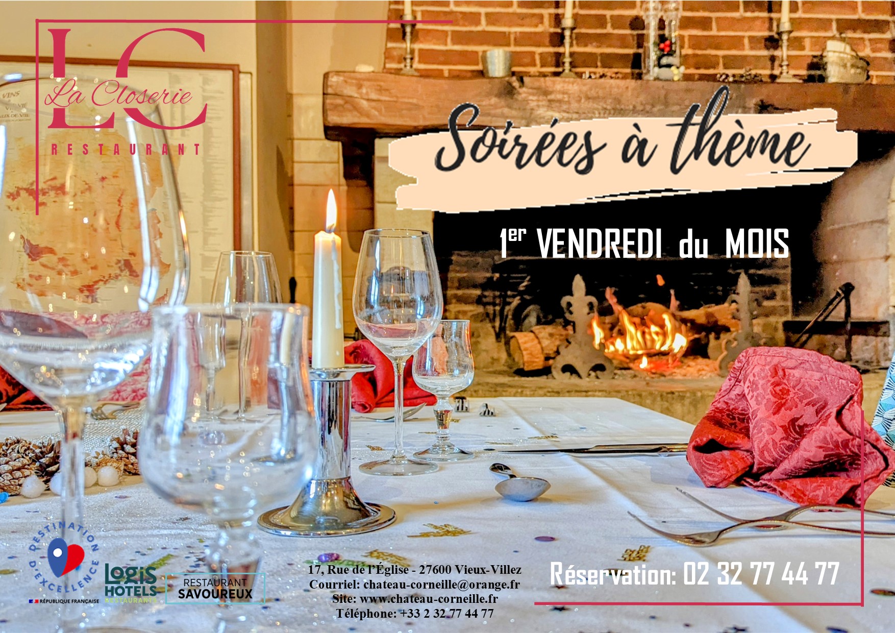 Tout au long de l’année, La Closerie vous accueille pour vos événements spéciaux : Saint-Valentin, Fête des Mères, Réveillon, Déjeuner de Pâques, Anniversaires… ainsi que lors de nos soirées à thème, chaque premier vendredi du mois.